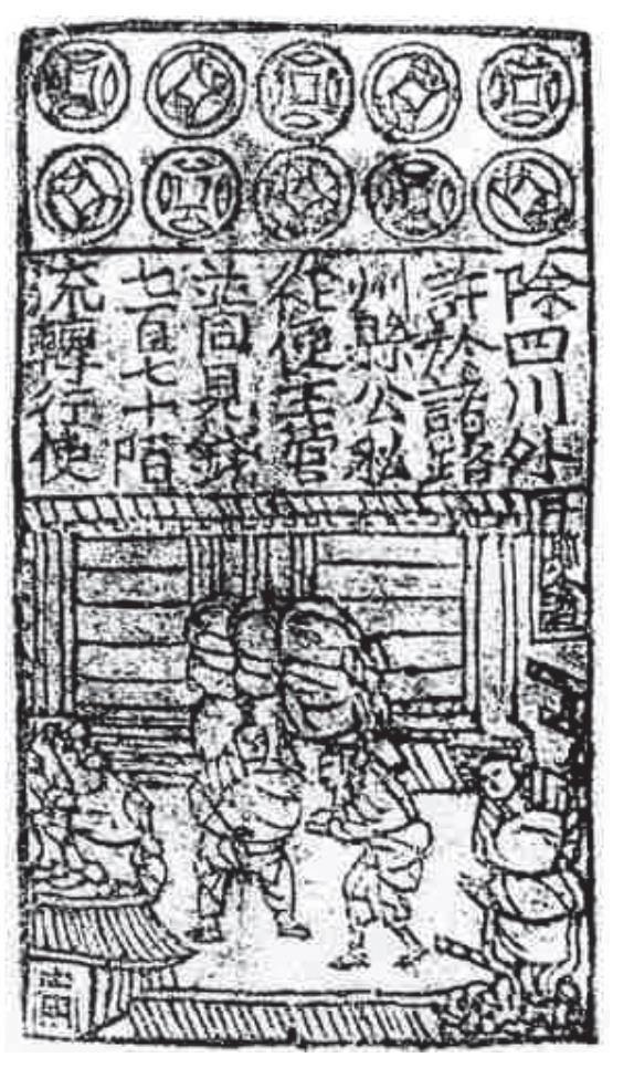 但四川铜矿不足,铁钱被废、铜钱昂贵,流通货币奇缺导致市面冷落、经济萎缩,民间便出现了许多便利商人经营的“交子铺户”。