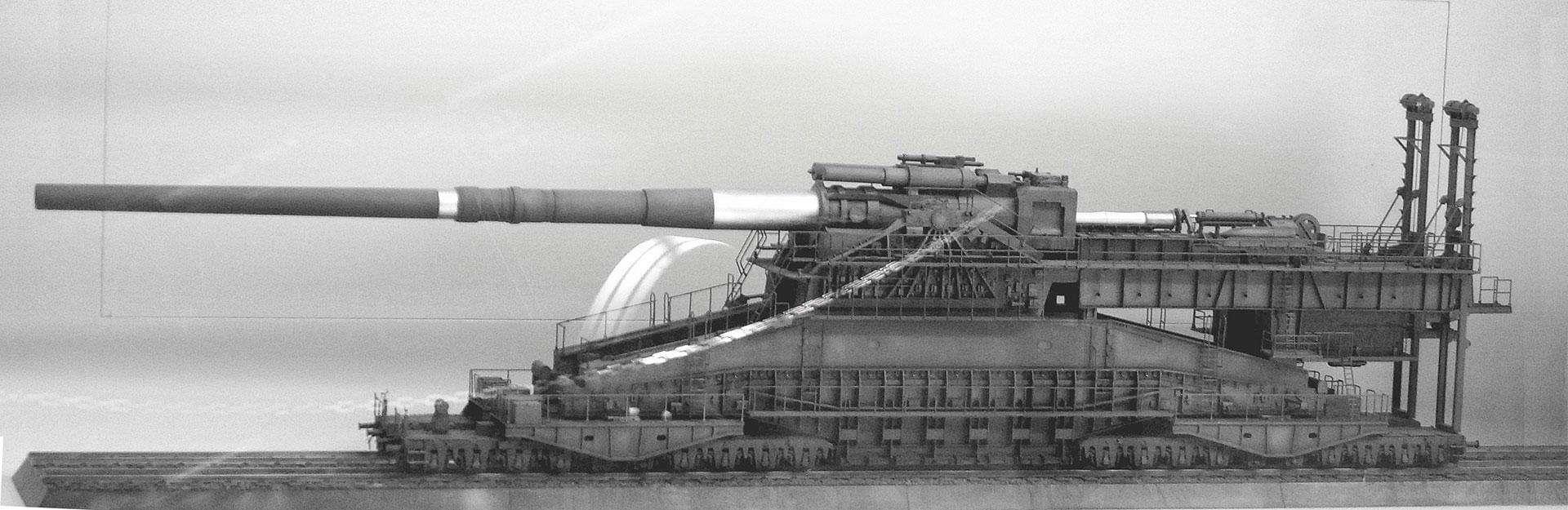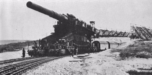 1942年初,“古斯塔夫”超重型巨炮成功出世,炮管长32米,战斗状态下全长达53米,高12米,重量甚至达到了1350吨。面对这样的庞然大物,不管是在装配、运输和设计试验的情况下,都会遇到很大的困难,所以当年古斯塔夫巨炮只制造了两门。1942年的夏天,德军在与苏联南部的战斗之中,对峙良久,于是古斯塔夫巨炮来到了战场,开始了长达13天的轰击,大片建筑物和永久性防御工事被夷为平地,30米深的防御工事被炸穿。