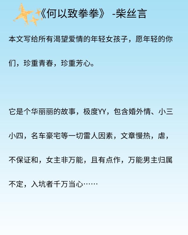 《何以致拳拳》 讲述的是洒脱女记者vs痴情公子哥的高干文。