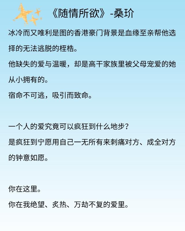 《随情所欲》讲述的是白富美女主vs英俊浪子男主的高干文。