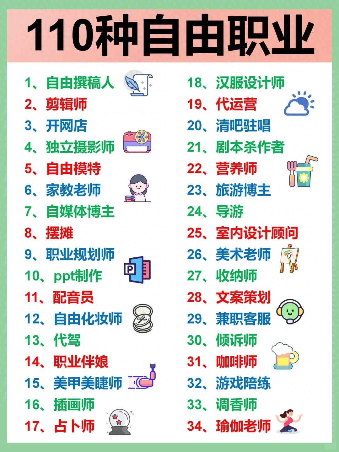 只工作不上班的110个自由职业大全!