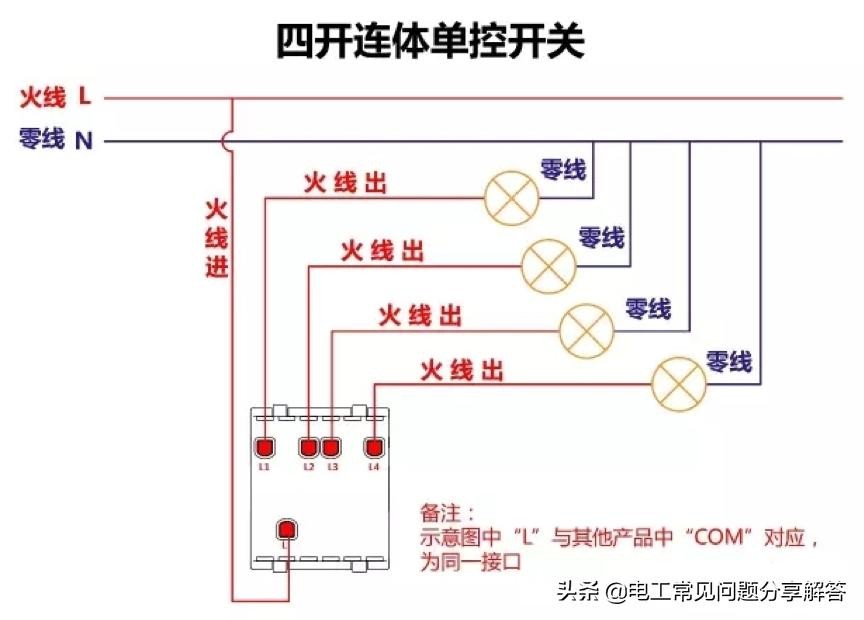 首先将零线直接从灯头部分穿过去,然后将零线放置在开关中心点上。然后将开关两头用其他电线连起来。在出线的时候,一个连接在220v的中心点上,另一个直接连接到开关上。完成以后,通好电看看开关是否能够正常工作。