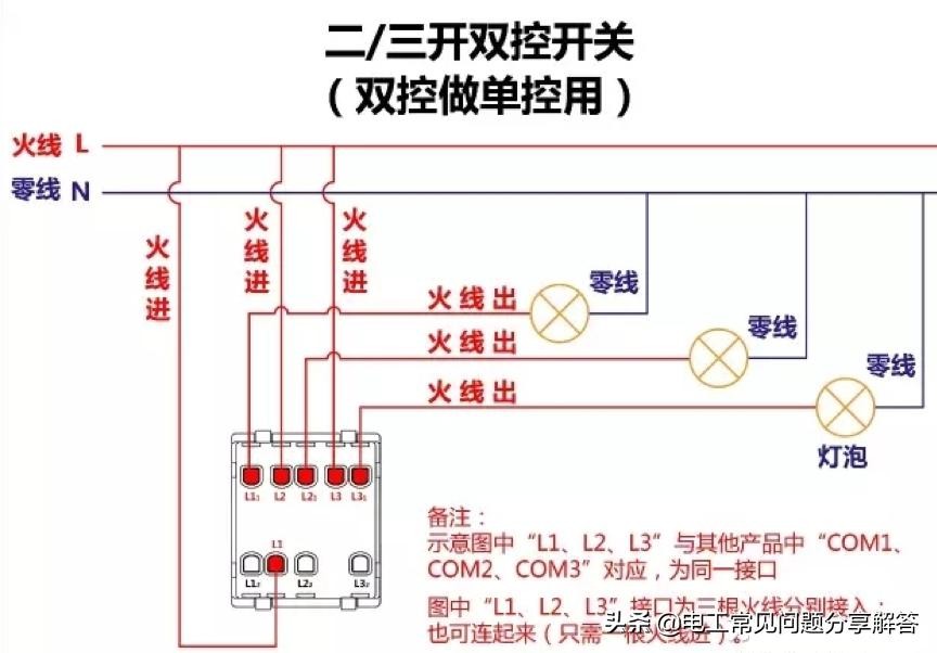 首先确定好双控开关中心点,然后并联好左右两个开关,一个开关接上火线,一个开关就直接连接控制线上。这个时候要注意开关之间的火线与零线是否正确连接,最好通电测试下电路是否正确,再看看灯具是否实现双控。但是要提醒大家,这类控制方式有安全隐患,特别容易导致跳闸现象,甚至引起整个线路问题。