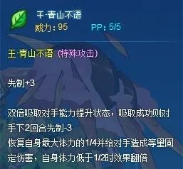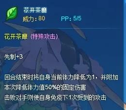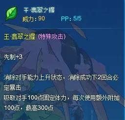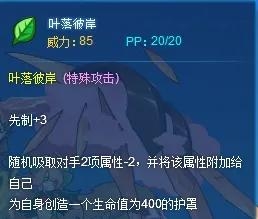 双倍吸取对手能力提升状态,吸取成功则对手下2回合先制-3。(双倍吸取好评!现在精灵强化都是全属性强化加吸血所以对面开强化了一个先三偷一下,这时候我方拿到保底速度+2特攻+2双防+2的能力值和对手先制-3的buff,基本上等于下回合我方茉蕊儿必定先手了!)