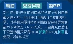 ③自己死亡后使下只出场精灵获得500护盾和500护罩且免疫1次异常状态。(请注意:护盾、护罩、次免均只能给下1只精灵,如果二连切的话,全都会消失不保留。)
