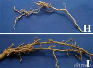 四、根部症状:柑桔黄龙病病原在韧皮部筛管细胞里繁殖,病原在枝梢韧皮部大量繁殖,继而堵塞筛管。植株向下运输养分功能降低,光合产物到达根系量少,根系饥饿,表皮易脱离、如果湿度过大还会造成腐烂,后期根系会大量死亡,根系腐烂后于植株叶片变黄。