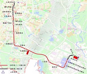 18号线三期(含三站一区间)线路:天府机场T1 T2航站楼站(不含)-机场北站、孵化园站、福田站,总长度3.28km,建设期限5年。