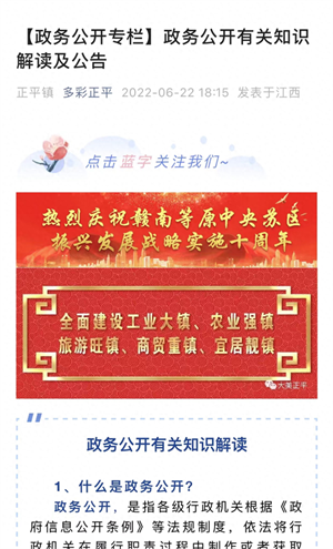 基层政务公开“十县百乡”优秀案例展示信丰县正平镇