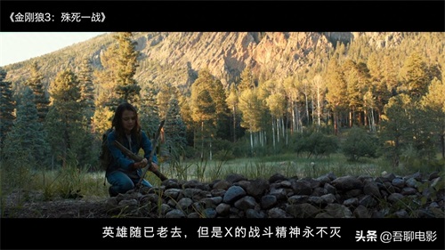 之后他们集体把狼叔埋葬,劳拉临走时,把十字木棍摆成了X的字样,英雄随已老去,但是X的战斗精神永不灭,自此电影结束。