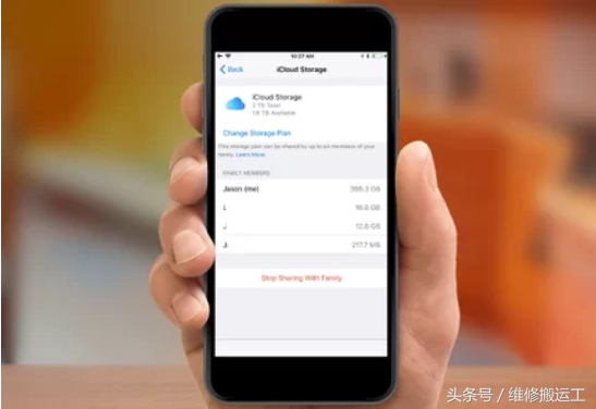 与家人分享iCloud存储