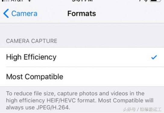 为了节省空间,iOS 11使用比以前版本更高效的视频和照片格式。默认情况下,iPhone 8会在HEIF中拍摄照片,并在HEVC中拍摄照片,并在与其他人共享文件时将这些格式转码为JPEG和H.264视频。但是如果您愿意,您可以强制手机以JPEG和H.264格式本机拍摄。从设置应用的相机部分,点击格式并选择更多兼容。