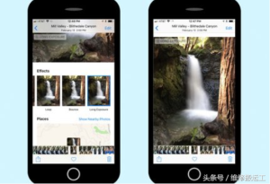 在iOS 11中,苹果的“实时照片”功能在静态图像之前和之后捕获视频更加灵活:您可以将Live Photo设置为循环播放,来回弹起,或者将所有图像一起编译成一个模拟长照相曝光。要将这些效果应用于实时照片,请向上滑动照片以显示效果列表,然后点击其他效果。长时间曝光功能特别适用于瀑布等自来水场景。