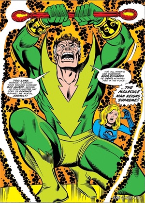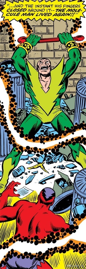 分子人来到雕塑家的家中时,想要用能力控制雕像,但是由于雕像是神奇四侠假扮的而他的能力不能够控制生物,所以没有起到效果,神奇四侠趁机打掉了他的魔法棒,将他击败。