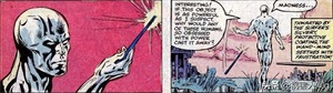 一段时间之后,银影侠发现了魔法棒,他捡起了魔法棒,但是由于他的银色皮肤起到了保护作用,分子人无法占据他的身体,银影侠随手丢掉了魔法棒。但就是这一次接触造成了之后很大的麻烦。