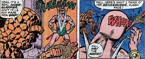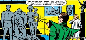 神奇四侠并不是分子人的对手,于是他们堕入了一个雕塑家的家中,雕塑家用石膏将他们伪装成雕塑。