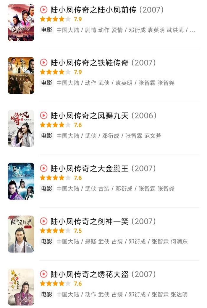 《陆小凤传奇》系列电视电影的评分,更是突破了同类型电视电影的成绩。