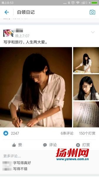 扬州网友“三字”的支付宝芝麻信用分有735分,但他意外地发现,自己也被支付宝推送了“生活在海外”这样一个圈子。在“三字”这个圈子页面上,记者看到,满屏都是一些生活在海外的美女发的私房照,有的求点赞,有的求打赏。不过,漂亮甚至美艳的美女照不少,但并没有看到什么大尺度照片。