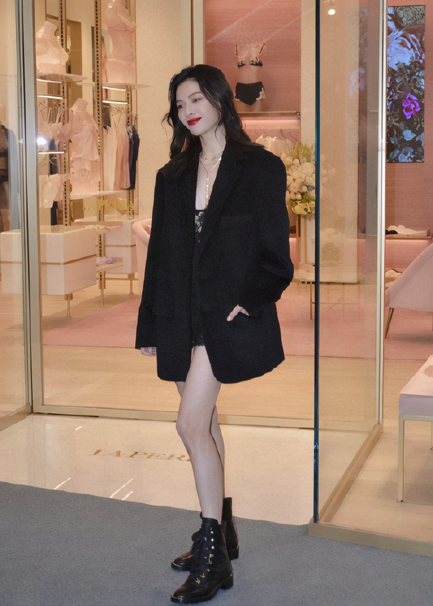 最近参加一个线下活动,在活动上,内搭蕾丝裙,外搭西装,大长腿太抢镜了,整体状态非常不错。当天活动的生图也被曝光,不少人被她气质圈粉,可以说是女神级别了。