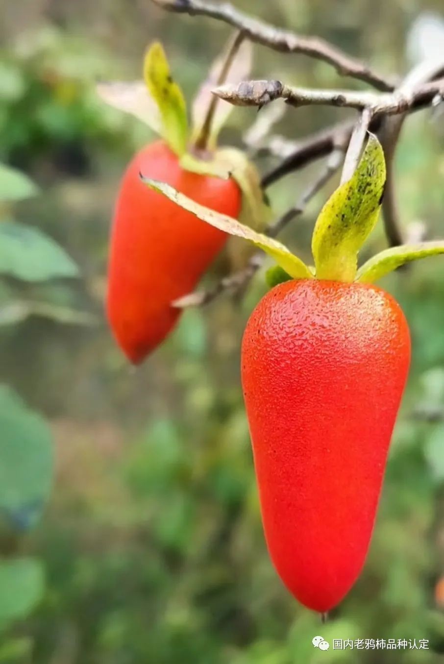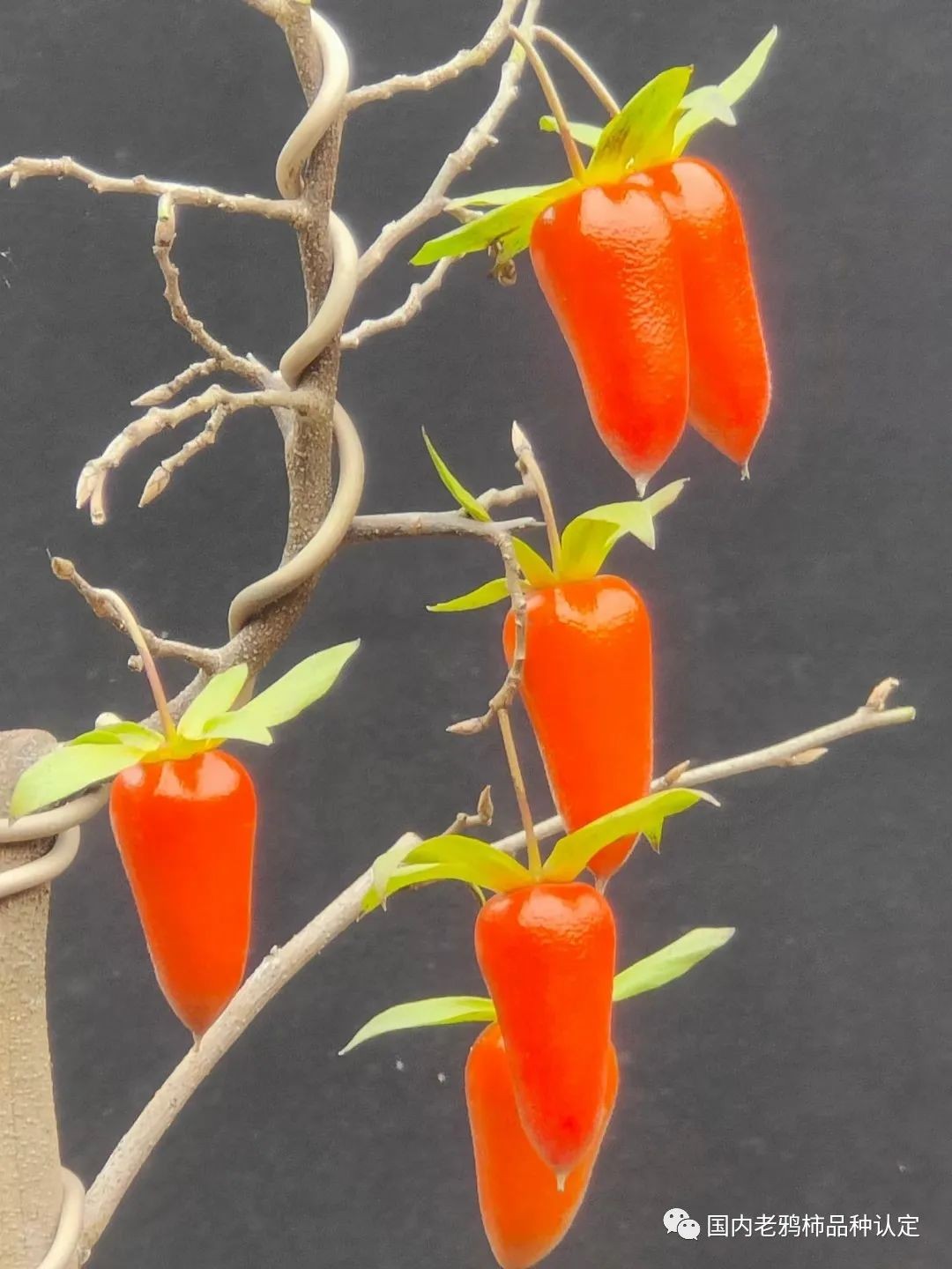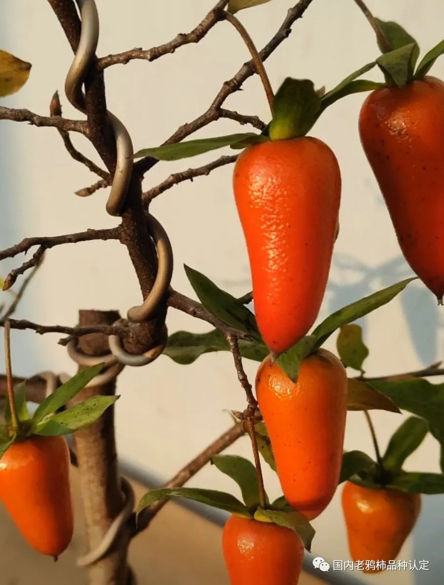 天骄(天娇)作为国内老鸦柿的品种,产地为浙江绍兴的山野,其果为辣椒型,颜色大红,果子比较大,萼片微微上翘,相对于果子,果柄稍长,粗度适中,因果型形似朝天椒被命名为天骄,经爱好者挖掘培育,被广大鸦友所喜爱。