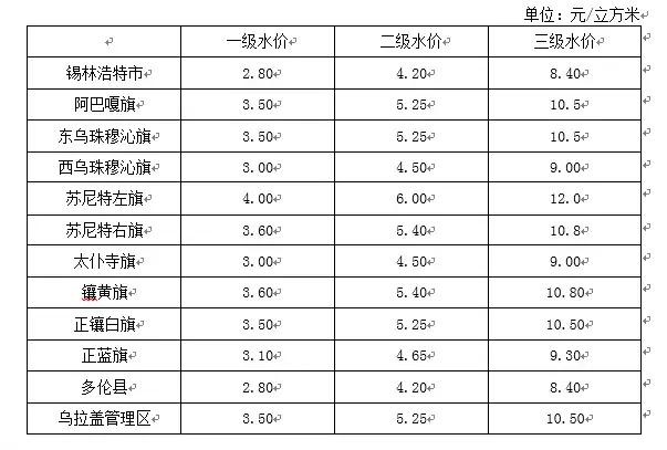 锡盟旗县市(区)公共供水范围内城镇居民生活用水逐步实行了阶梯价格制度,