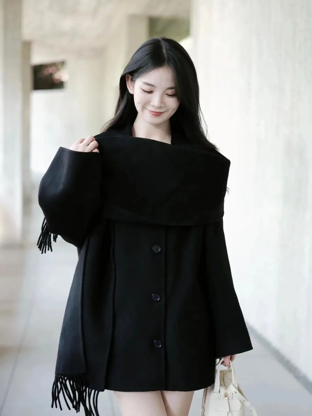 而大衣上的流苏设计,更是点睛之笔,仿佛为整体造型注入了灵动的旋律。每一步行走,都是一场时尚的盛宴,让人目不暇接。✨