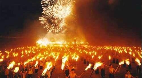 传说,"上元节″即元宵节,起源于火把节。汉代民众在乡间田野持火把避灾却邪和驱赶虫害,祈祷获得好收成。直到现在西南一些地区的人们,还在正月十五,用芦柴或树枝做成火把,成群结队高举火把在田间地头或晒谷场上唱歌跳舞。隋、唐、宋时期,更是盛极一时,参加歌舞者多达万人以上,通宵达旦,热闹非凡,其乐无穷。