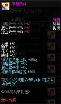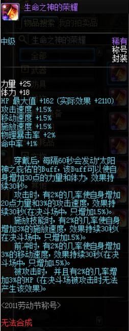 DNF于2008年开服,2009年的劳动节礼包也是初代五一套,60版本的初期,称号属性自然相当辣眼睛,这属性放在现在甚至还不如称号簿里的任务称号,即便是这样,这个称号在当时依然可以卖好几百万,也就是好几十RMB呢!