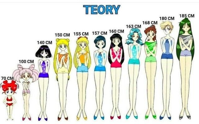 但大家又是否清楚每个角色的身高呢?网上流传十位美少女战士的身高图,女主角月野兔竟然只有150cm,而最高的是冥王雪奈,身高达185cm,另外拥有男性化外表的天王遥亦高1.8米。有网民笑言月野兔身材娇小,跟她一对礼服幪面侠理应亦不高,估计身高最多只有175cm,比冥王雪奈与天王遥仲要矮一些。