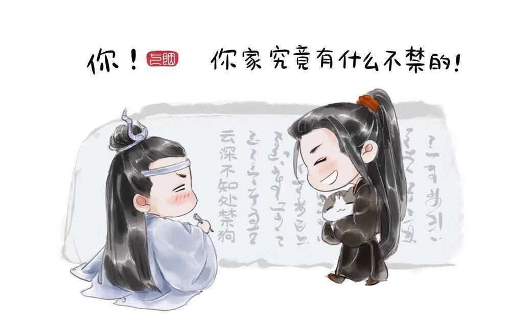 叔父:云深不知处禁魏婴;蓝湛:云深不知处禁狗;魏婴:三千多条家规也禁不住我!