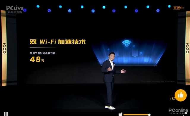 这场发布会一上来就先介绍了iQOO最新的双Wi-Fi加速技术,这也印证了之前的一些猜想。