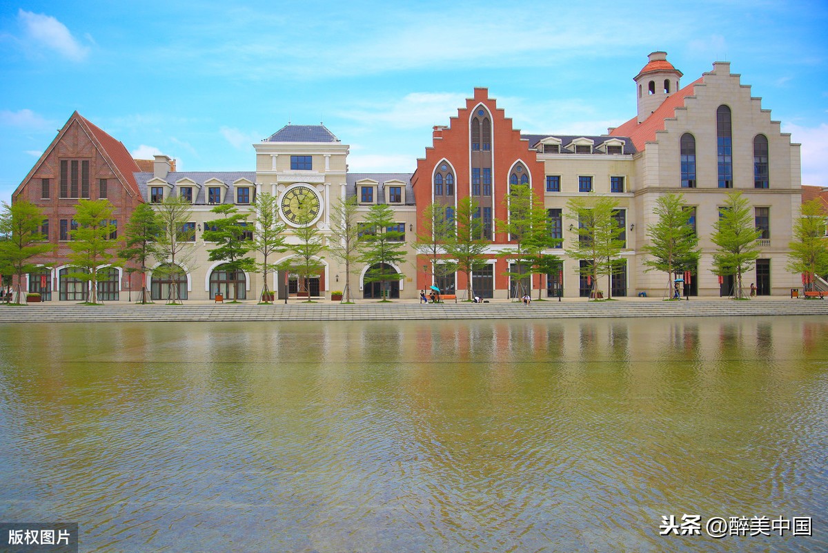 红瓦尖顶的童话风建筑、浪漫温馨的湖畔礼堂、格调十足的钟楼,让人如同穿越欧洲,不出国门即可打卡异域风情。