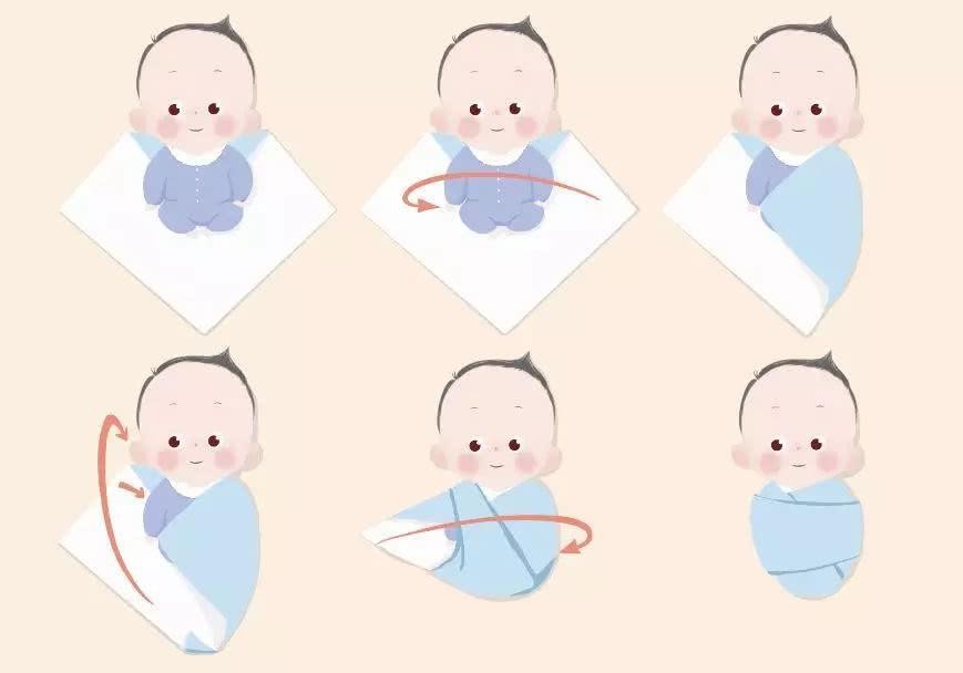 首先我们要学会裹襁褓。新生儿并不知道手脚是他自己身体的一部分,经常会无意识的舞动手脚,把自己闹醒甚至吓哭。从出生到近2个月大都可以通过给他裹襁褓来减少惊跳和环境刺激,也能让宝宝睡得更久,睡眠质量更好。