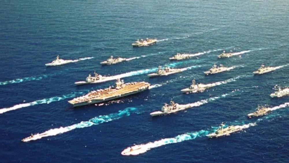 庞大的航母编队在出行的编制。在一望无际的大洋中作战,三艘舰艇的战斗力是不够的,即便是作为现代海军作战利器和综合国力象征的航空母舰,往往也是集群的形式出现。航空母舰在大洋游弋时,时刻面临着来自空中、水面和水下的威胁,尽管航空母舰自身也拥有部分防御系统,但其整体防御能力十分。因此,航空母舰需要以编队的形式在海上活动。