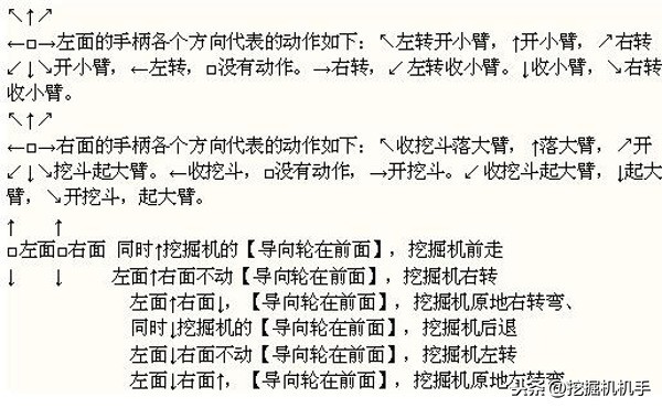 挖掘机的手柄的操作不同于汽车的操作,自然状态下手柄处于居中位置。比如说旋转操作时,需要考虑挖掘机的惯性,你摇动手柄,挖掘机便开始转动,接着松开手柄,手柄自然居中后挖掘机由于惯性还会有继续旋转的趋势,所以操作时应当考虑摇动操作手柄的距离。