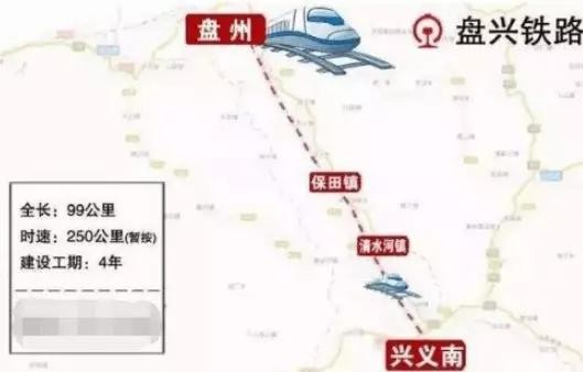 线路介绍:该线自沪昆高铁盘州站引出,向南经盘州市保田镇、兴义市清水河镇,止于兴义南站,线路全长约 99 公里,其中,盘州市境内线路长 58.75 公里,拟设盘州南、保田站;兴义市境内线路长 40.08 公里,拟设兴义南、兴义北等站。