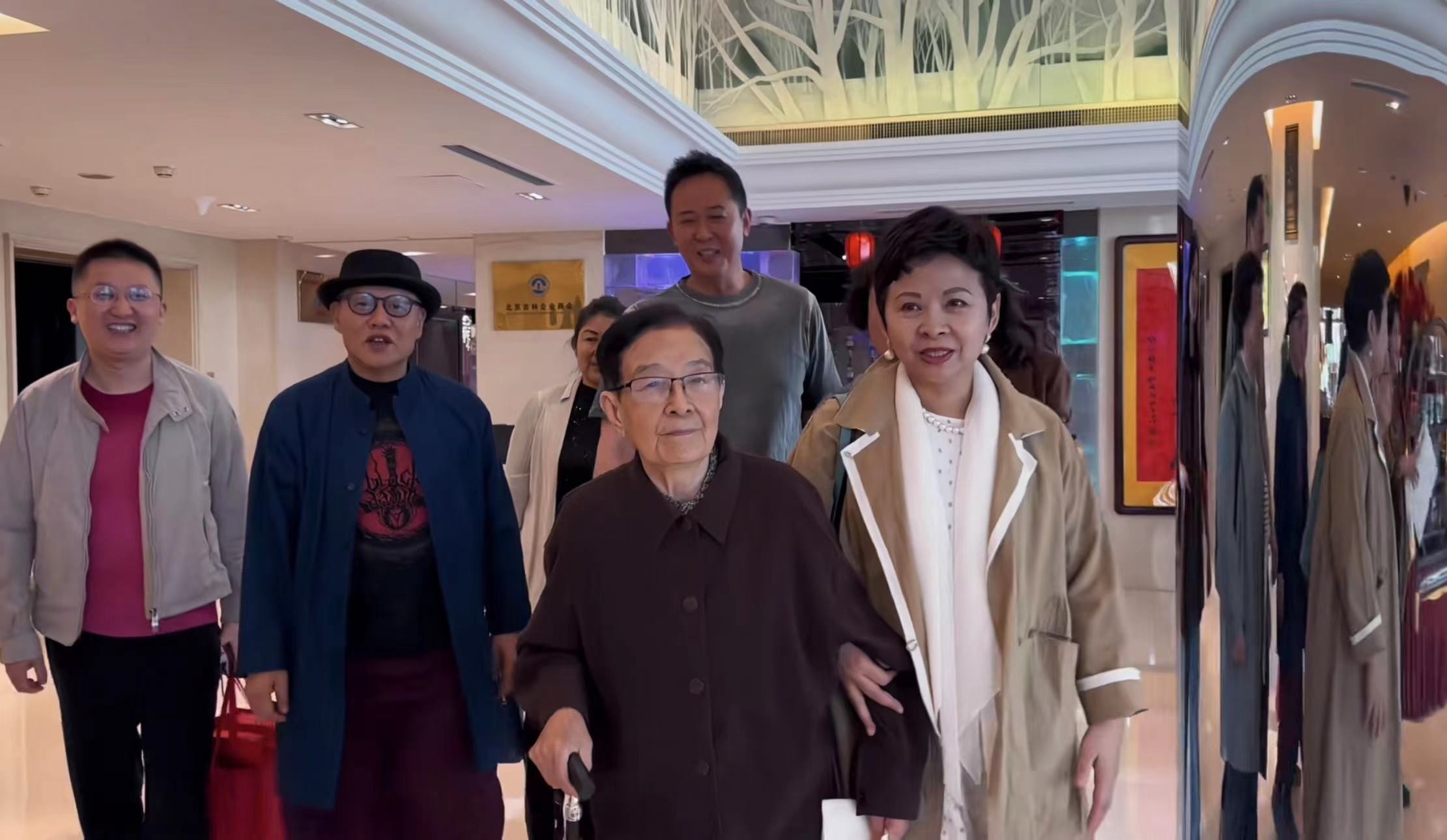 当庆生聚会结束后,谷建芬竟然不需要坐轮椅,而是只拄一根单拐就能够行走自如,在大家的簇拥下,几乎可以健步如飞。