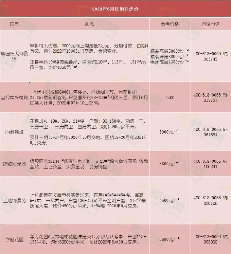 备注:以上为6月最新房价,相关信息来源售楼部,房价差异可能因楼层、楼栋不同,如有变动请以实际成交价为准。