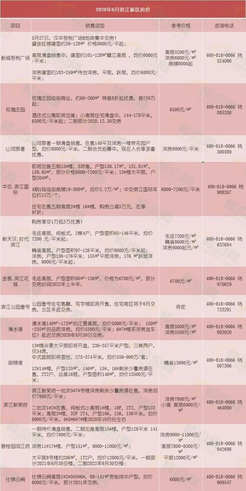 滨江新区多楼盘处于收尾阶段,房价有微降。区域内目前在售的滨江新荣府毛坯高层、御锦湾即将推出236-357平米大平层,在售的小高层均价已达13500元/㎡;中交滨江国际即将加推五期15#楼及大平层13#楼,在售房源均价6000-7200元/平米,区域内房源已经是卖一套少一套。