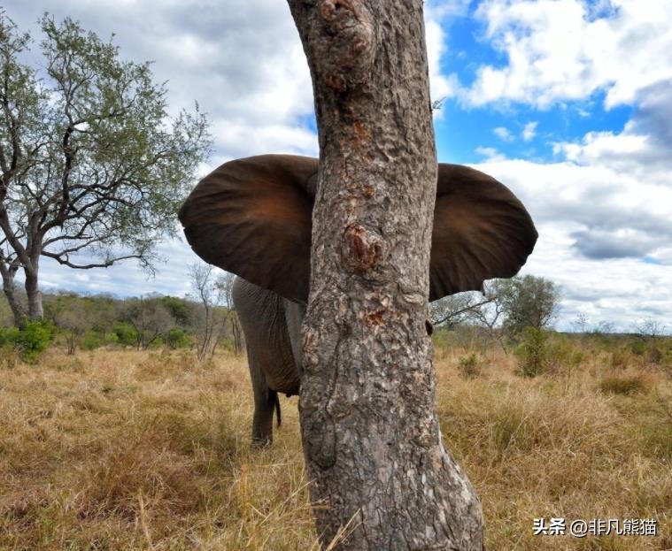 24 害羞的大象躲在大树后,依然藏不住自己大大的双耳。