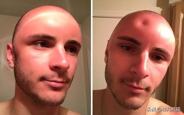 20 被烈日暴晒是容易过敏的,这哥们剃了光头之后被太阳晒过之后肿成了卤蛋。