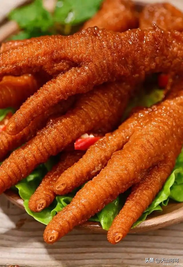 然而,要想让鸡爪真正形成虎皮纹路,还需要进行最关键的一步——冷水浸泡。将炸好的鸡爪立即放入冷水中浸泡半小时以上。冷水的刺激会使鸡爪表面的肉质收缩,从而形成虎皮纹路。浸泡的时间越长,虎皮纹路就越明显。但需要注意的是,浸泡时间过长也可能导致鸡爪变得过于软烂,影响口感。因此,在浸泡过程中要适时检查鸡爪的状态,以确保其达到最佳的口感和风味。