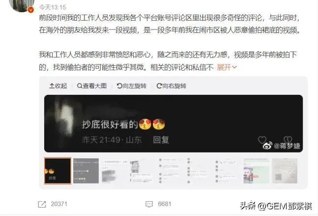 事实上,杨幂并非首次遭遇性骚扰。早在几年前,她就曾因为一张偷拍照而陷入舆论的漩涡。在那张照片中,一名代拍者通过塑料棚布的缝隙,将手机镜头对准了杨幂的大腿,甚至拍到了她的裤裆。这样的行为,不仅侵犯了杨幂的隐私,更是对她人格尊严的践踏。而这样的事件,在娱乐圈中并非个例。张含韵、鞠婧祎、蒋梦婕等女星,都曾遭遇过类似的性骚扰事件。她们在公众场合下,被迫承受着来自陌生人的恶意目光和侵犯行为,身心俱疲。