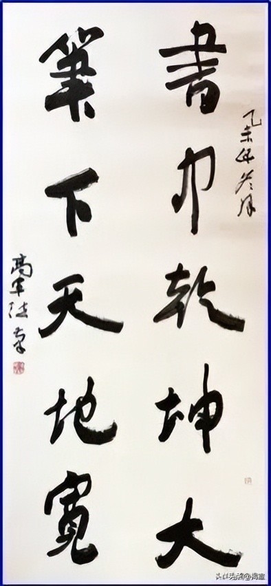2015年冬,著名军旅书法家、中国书法家协会理事、总参谋部师职干部高军法大校,应舒同秘书揭晓之邀书写作品“书中乾坤大,笔下天地宽”,参加勇舒同百年诞辰书法大展