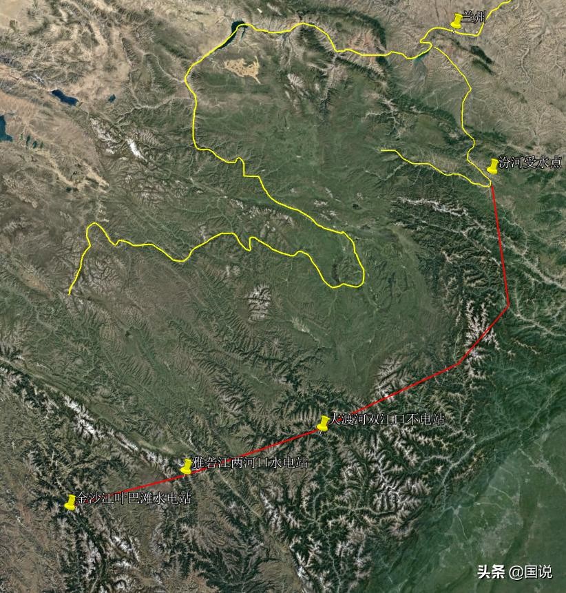根据规划,第一级取水自金沙江叶巴滩水电站的水面高程为2889m->73公里隧洞->第二级取水雅砻江两河口水电站水面高程为2865m->103公里隧洞->第三级取水大渡河双江口水电站水高程2550m->300多公里隧洞->黄河支流汾河2300m。