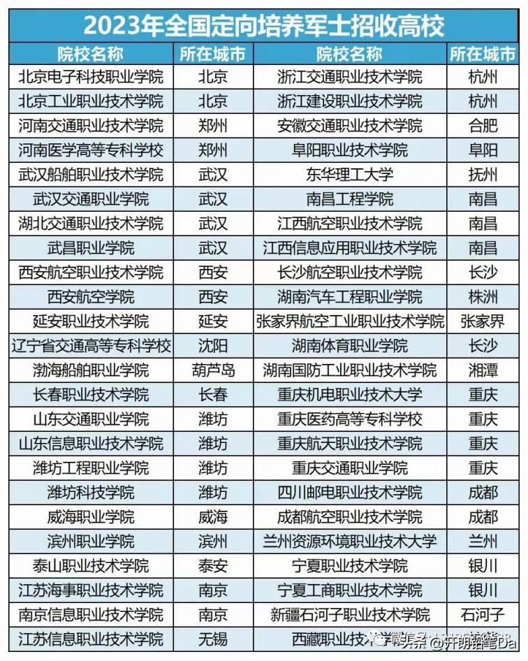 2023年定向士官的招生院校由44所增至48所,关于这48所的具体院校名单及分布情况,如下: