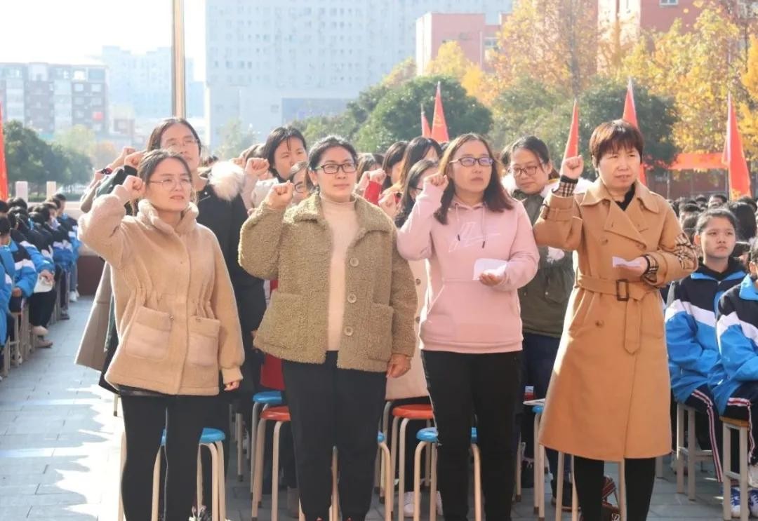 申利杰老师带领全体高三教师进行宣誓:肩负使命,认真备考,刻苦钻研,精心授课,用智慧为你导航……挥洒汗水,为高考保驾护航,倾注热血,为一中再创辉煌!誓言豪情万丈,振奋人心,彰显着老师们决胜2021年高考的信心。