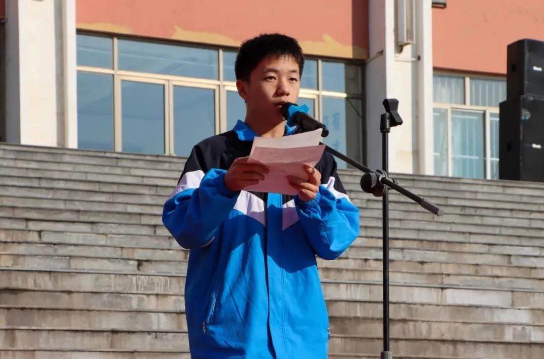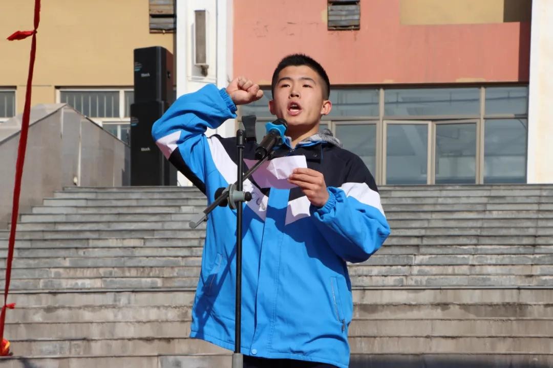 首先,高三15班刘嘉丰作为学生代表上台发言。他号召同学们要强化奋斗目标、树立理想信念、调整学习心态,相互勉励、顽强拼搏,不负学校重托、不负恩师厚望、不负青春梦想,立志苦干二百天,激流勇进将梦圆,实现人生的理想,再创一中的辉煌。
