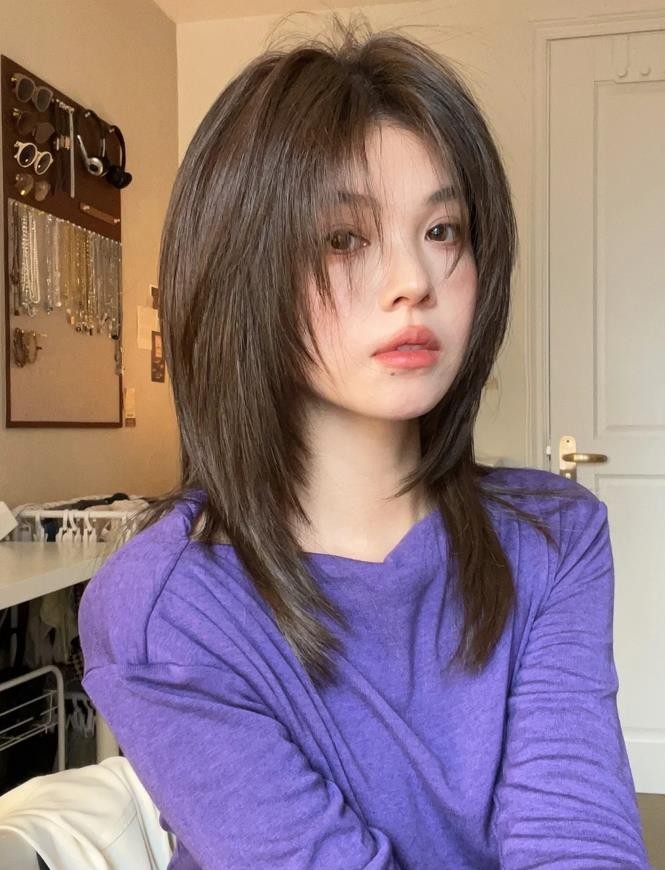 不管是什么脸型都可以尝试的一款高层次发型,在日常很好打理,基本就是洗完吹干就行,对于发量稀少的姐妹来说,剪完后整个人都变得很轻盈了,可扎可披,可盐可甜的,搭配中分的刘海,修饰脸型又减龄。