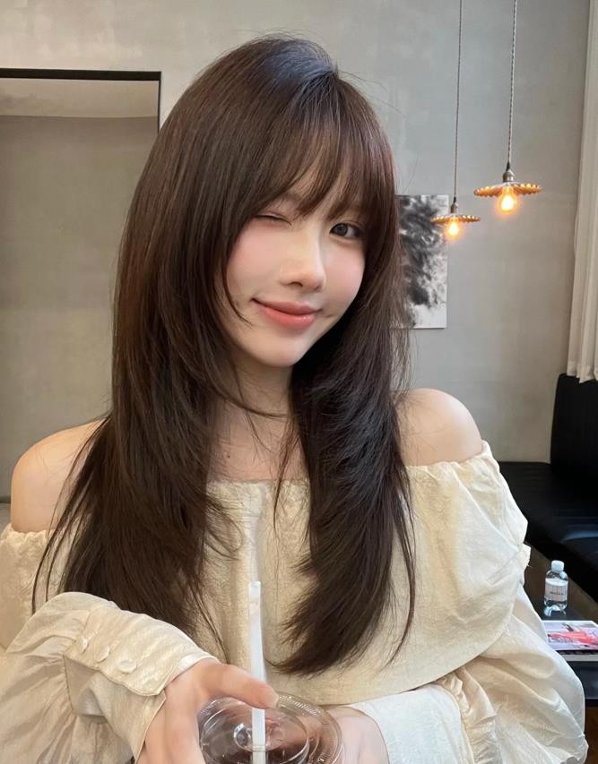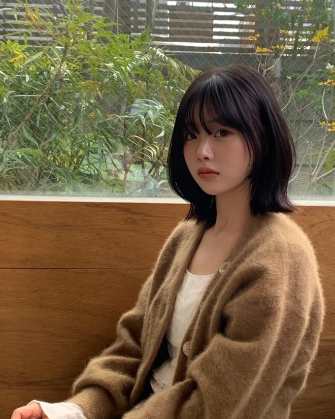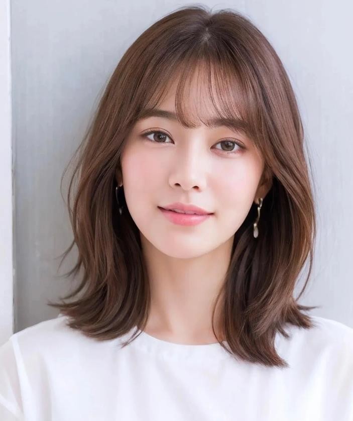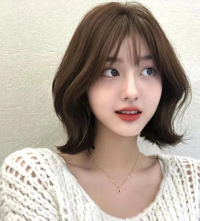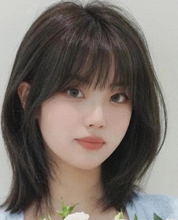 日韩通吃的一款发型,这种是剪出来的,完全不需要烫,在日常里可是非常好打理的,头发修剪到齐肩的位置,因此会呈现出一种外翘的弧度感,搭配空气感刘海,真的非常减龄,一秒就将脸部轮廓修饰了。