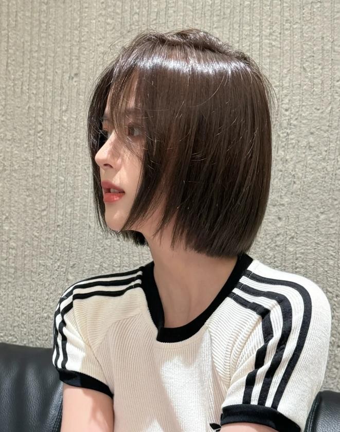 真的后悔没有早点剪这个一刀切短发,太帅气了,头发的长度修剪到后颈部的位置,能在视觉上很好拉长脖子线条,打造高挑感。搭配空气刘海,增添了灵动感,又减龄,不管是在夏天,还是秋天都合适。